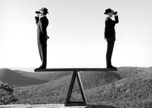 I was fortunate enough to grow up with four other members in my immediate family and when arguments occurred–as they inevitably did–I found myself teetering back and forth between mom and dad, sister and brother. ‘Who’s side should I take?’ (Never did I ask myself: ‘Do I have to take a side?’) For me, each situation represented a yin or a yang, a fight or a flight. While occasionally “caught in the middle,” I usually took a stand on one extreme side or the other.